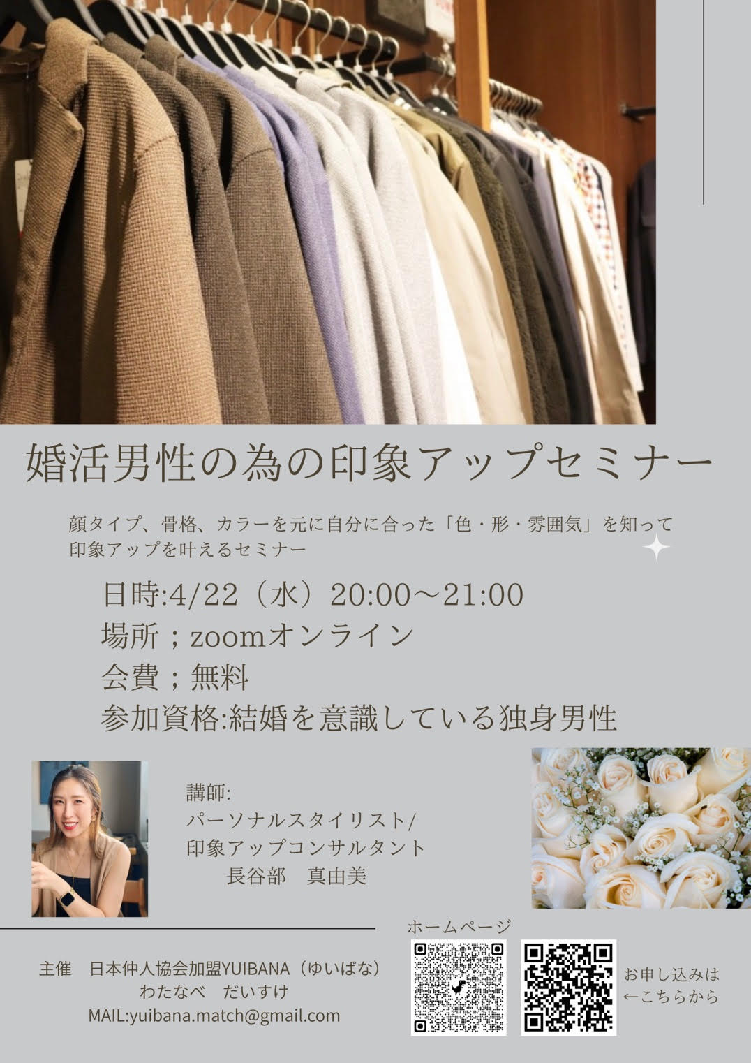 そこでこのたび、結婚を意識している独身男性向けに、印象アップをテーマとした無料オンラインセミナーを開催いたします。