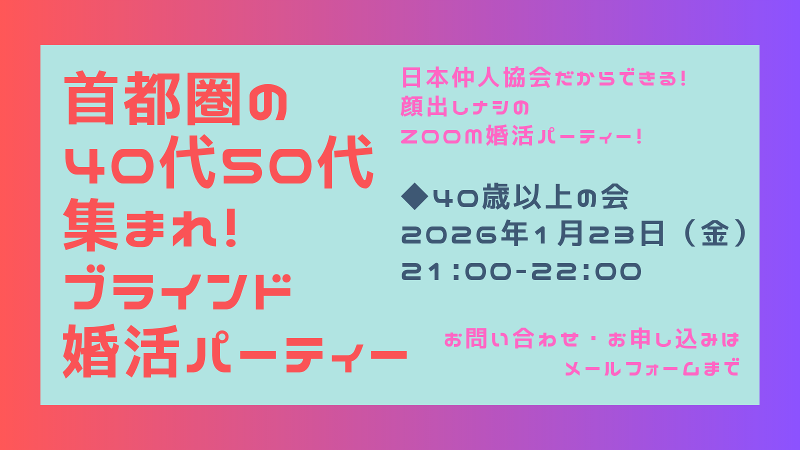 首都圏の40代50代集まれ!ブラインド婚活パーティー