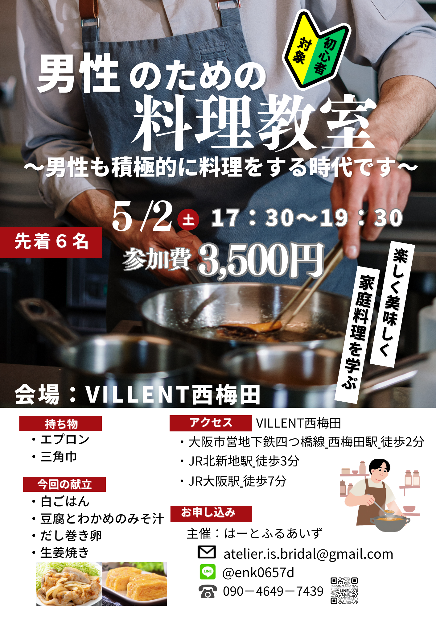 料理初心者の男性向け料理教室を開催することになりました。